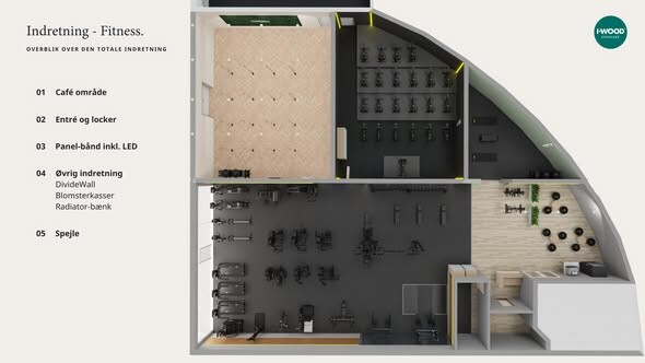 I planlægningsfasen har der været fokus på at skabe løsninger, der både er funktionelle og æstetiske, og som passer naturligt ind i centerets øvrige indretning. Caféområdet opføres som et samlingspunkt i centeret, hvor medlemmer kan opholde sig før og efter træning.